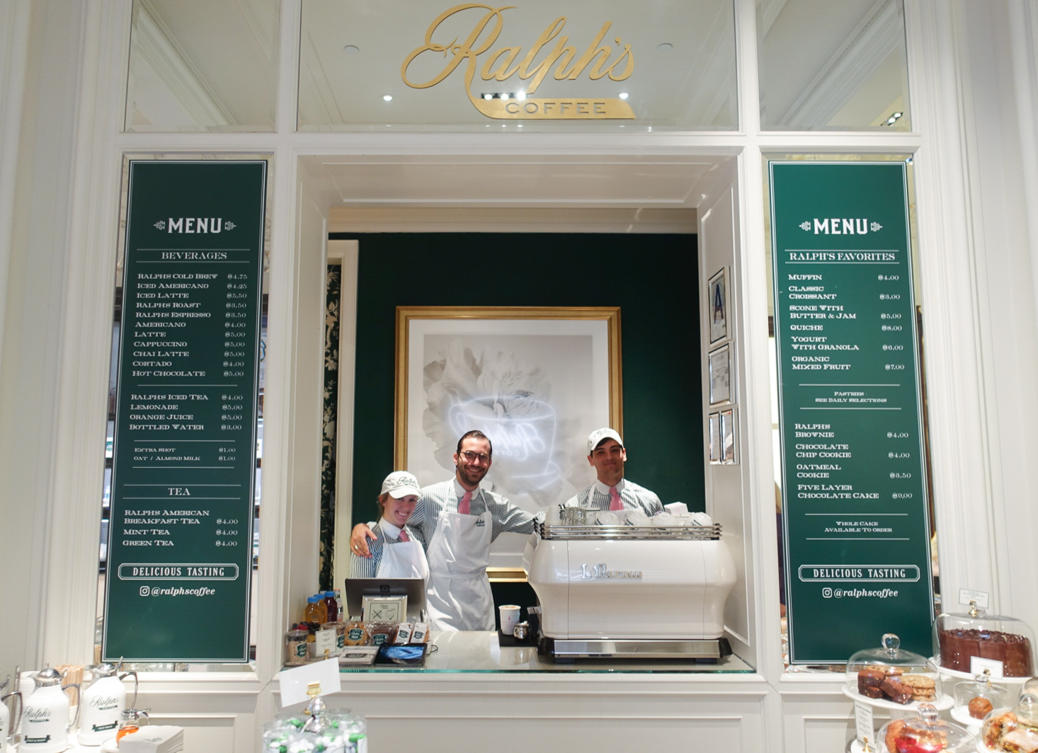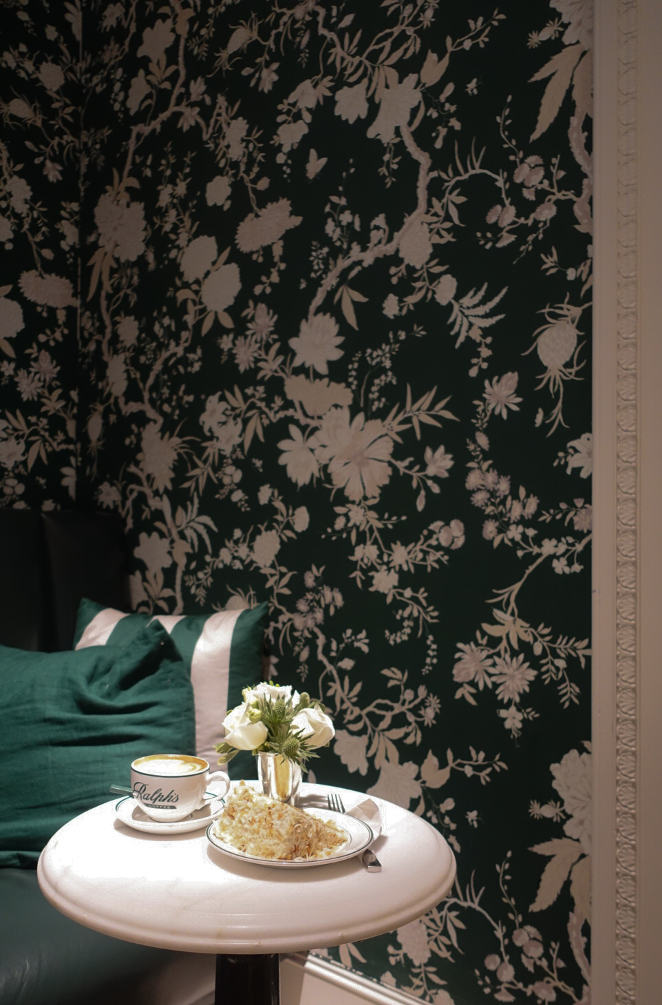 Located in northeast wing of the Ralph Lauren women’s mansion (how chic does that sound already), the coffee shop is perfectly bustling as you’d expect it to be mid-morning with just a bit more Ralph Lauren glamour than your average neighborhood spot. With a high vaulted ceiling, a forest green leather banquette, decorative molding and that oh-so-precious floral wallpaper I’d love to do a future powder room in, I can see why the barista said they have plans to expand. I can almost understand now why this iteration of the coffee shop plan is more successful, as I think it aligns better with what people really want; a beautifully decorated space to relax for a minute, sink into the loveliness this iconic American brand has created. As a shopper you often feel rushed, silently encouraged to purchase quickly and leave in most shops. But I think retailers could really use a more inviting space for their customers to relax while they browse and I could only assume it would incur more sales, especially if they sold a cocktail of some sort!