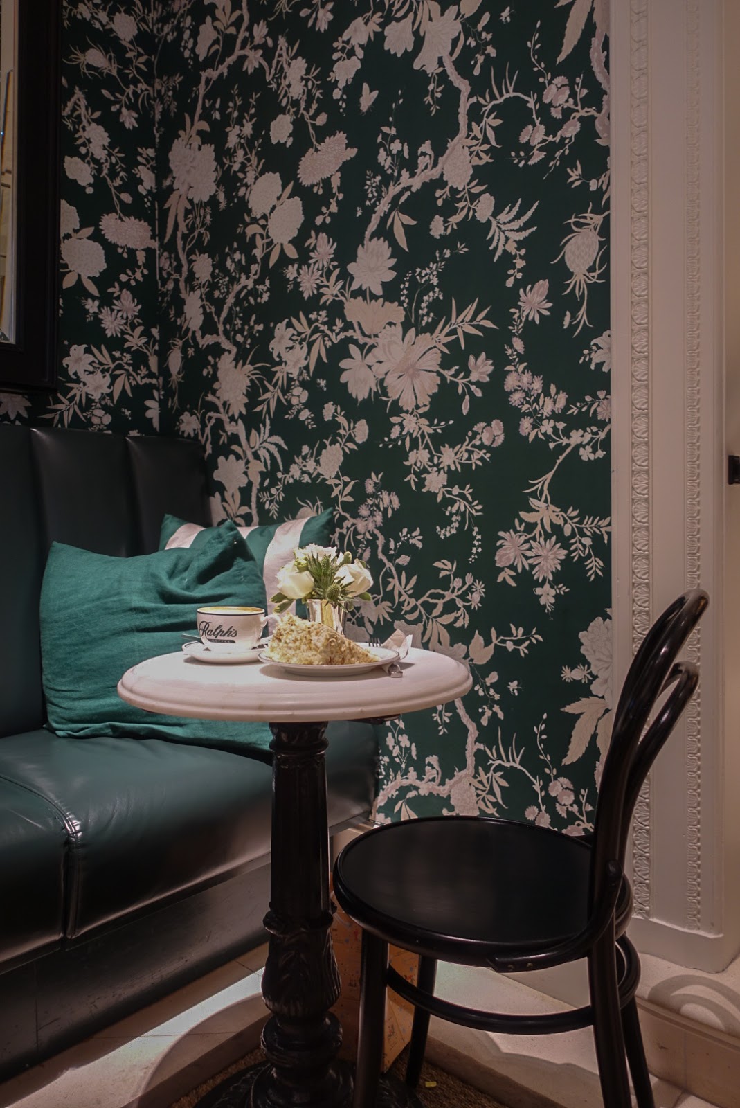 I decided to visit the Madison Avenue location, given how beautiful the green floral wallpaper looked online and because I think it’s a much more attractive setup inside the beautiful Ralph Lauren shop. I think most retailers should become smarter and consider combining cafes and restaraunts into their brands, many of which have and I love them all. For example The Skinny Dip Charleston with their frozé served in the upstairs bar/coffee shop, Mansur Gavriel with their perfectly shaded pink and flowered courtyard, La Mercerie with the most beautiful blue hued decor and French menu, and of course Restoration Hardware, with stately restaurants in Chicago, New York, West Palm Beach and Napa Valley.