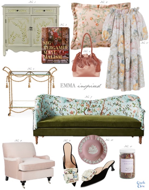 I fell madly in love…. with this film when I first saw it on the big screen and now again after purchasing it to watch forever at home. The colors, the wit, the absolutely fabulous aesthetics make may heart beat with constant joy throughout this fresh take on Jane Austen’s long loved classic love story, Emma, is everything. I knew right after seeing the trailer for the first time how much I’d enjoy the perfect details that went into making this story come back to life, and back to life it came. The colors resembling every pastel shade in a macaron box and my dream closet, the set and costume design is extraordinary. So after drooling over it all I decided to scour the internet for all things resembling this outstanding 19th century period piece that would continue to make perfect sense in 2020. And after being at home for almost two months now, I think we all are looking for something to take us to our own version of wonderland, this film adequately representing mine. Enjoy. Xx