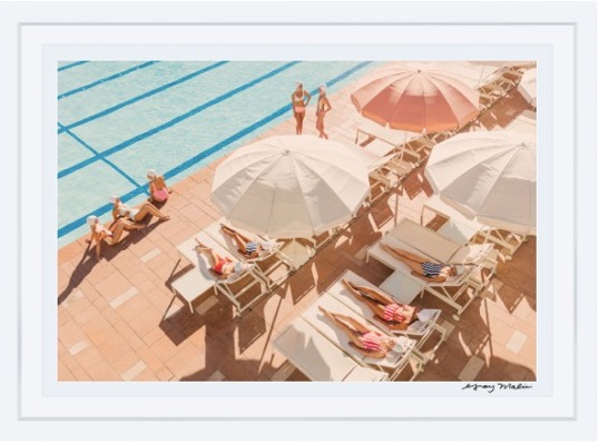 Nobody does beach art quite like Gray Malin, and once again, he has completely knocked it out of the ball park with his very recent collaboration with the Coral Casino Beach Club in Santa Barbara. The series just screams summer and is perhaps another accurate portrayal of California dreaming. I love the coral and pink tones against the very bright blue sky and pool. Like all of Gray’s art, taking a look just immediately transports you into somewhere absolutely beautiful, as if you can already feel the warm sunshine and expect a perfectly crafted cocktail to be delivered within moments from a gorgeous waiter. Similar to Slim Aarons’ work, Gray tends to capture some of the most elite places around the world, ones that particularly have a reputation of perfecting luxury. And the Coral Casino Beach Club is no different, evoking that ‘summer at the club’ feel. The Coral Casino is members only but I went while staying at the Four Seasons across the street, which gives hotel guests access during their stay, and I can assure you it does not disappoint! If you ever plan a trip to Santa Barbara I highly recommend considering it just for the perk! Until then, we will just swoon over the very delightful slice of summer Gray serves up in this collection. Enjoy.