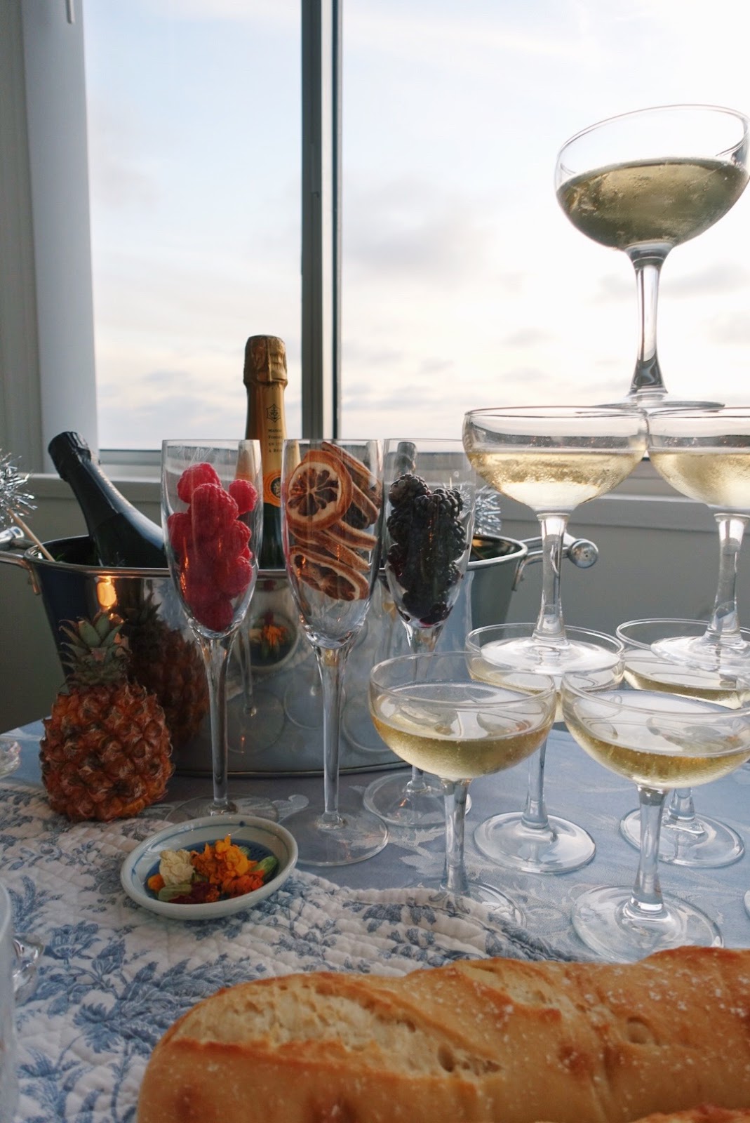 I’ll be honest, I’ve never really cared for New Year’s Eve… I have however enjoyed finding a cute sparkly dress and having one last hoorah to end the holiday season. I have recently vowed to either be on vacation or at home from now on, in order to avoid the dread of celebrating this holiday in the city I live in. But I guess I will have to wait until next year to live that dream out since my fiancé and I have decided to go to a nightclub, unfortunately. What we will be doing, however, is having a nice dinner party at home with some friends beforehand, and so my dream came half true, as we will get to spend some time inside our own place, sans sloppy people who I know have every intention of ruining my sequin dress. So I had a really fun evening planning this dinner table and an even more fun enjoying the fruits of our labor sitting and nibbling on a mini feast, watching the sunset. I hope you enjoy it just as much as I did and get inspired for your own celebration ringing in the New Year. Enjoy!