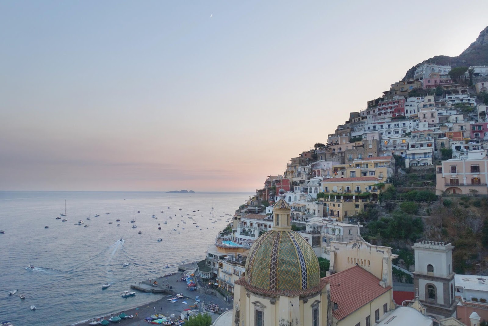 If you take away any advice from this guide, please promise me you will go to Le Sirenuse for a drink, preferably at sunset! This was the best spot in Positano (aside from our balcony with pizza and champs) and simply the most beautiful moment! More details about Le Sirenuse here. We sat in the Champagne and Oyster Bar which serves cocktails, seafood and other yummy snacks, but they also have Franco’s Bar which has a beautiful view too but only serves drinks. I ordered a spritz (in Italy drinks always come with some yummy snacks like olives and chips) and a delectable cheese and charcuterie plate while we watched the sky turn the most beautiful shade of pink and blue. Everywhere in Positano has lots of breathtaking options to do just this, but I found Le Sirenuse to be the very best!Â