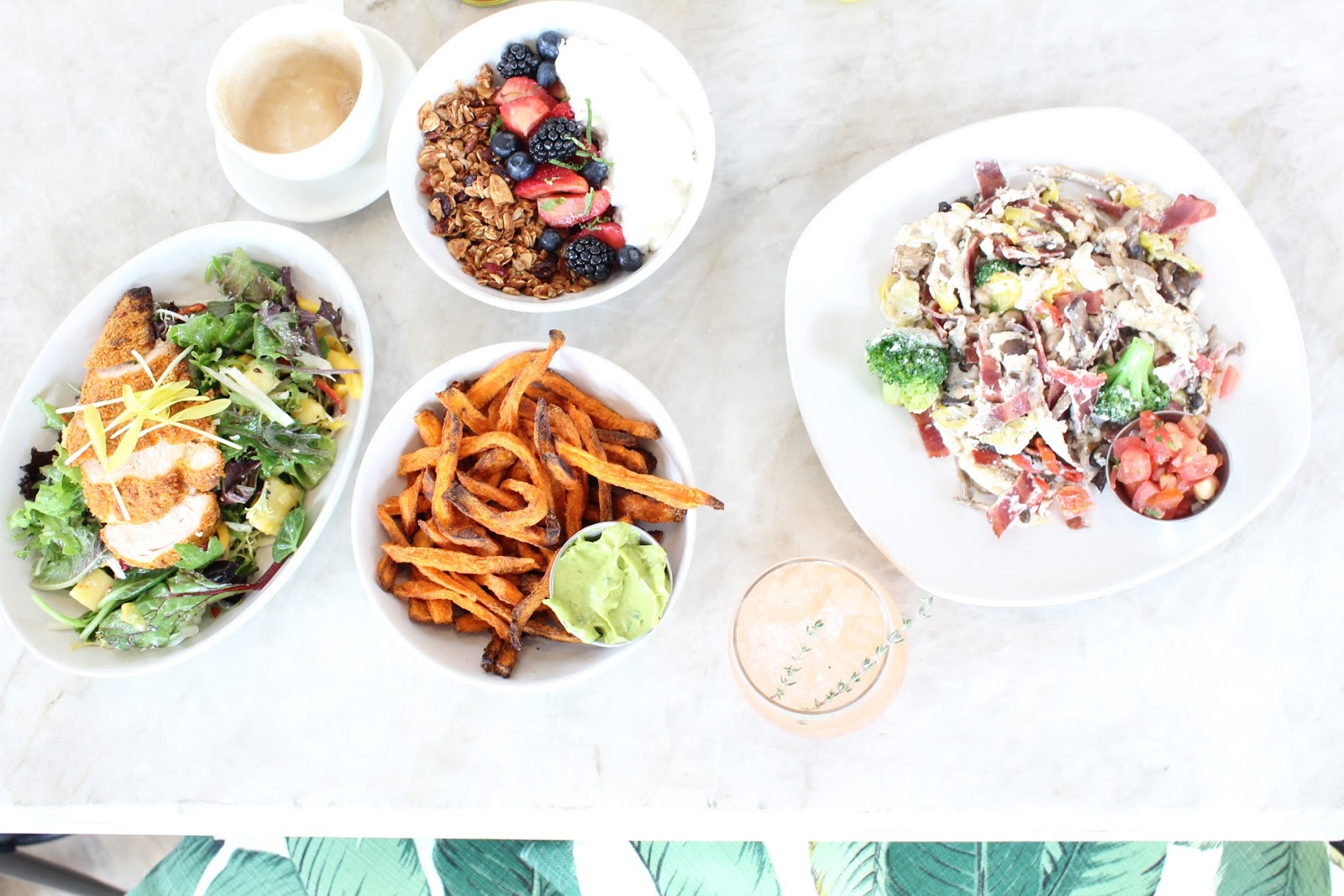 So before I eat anywhere, I like to check out the decor scheme first and this one doesn’t disappoint! I LOVE bright and airy spaces filled with tons of natural light. And I spy a banana leaf print pillow, do you? The green leaf plant with the white walls, natural light and open windows represents the way I like to see Southern California very well!