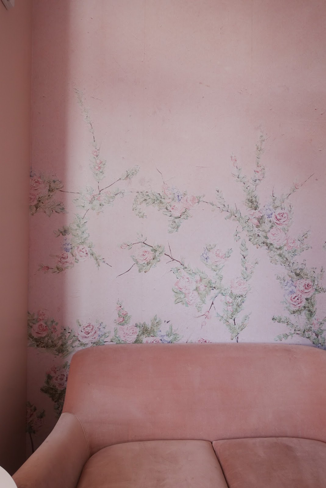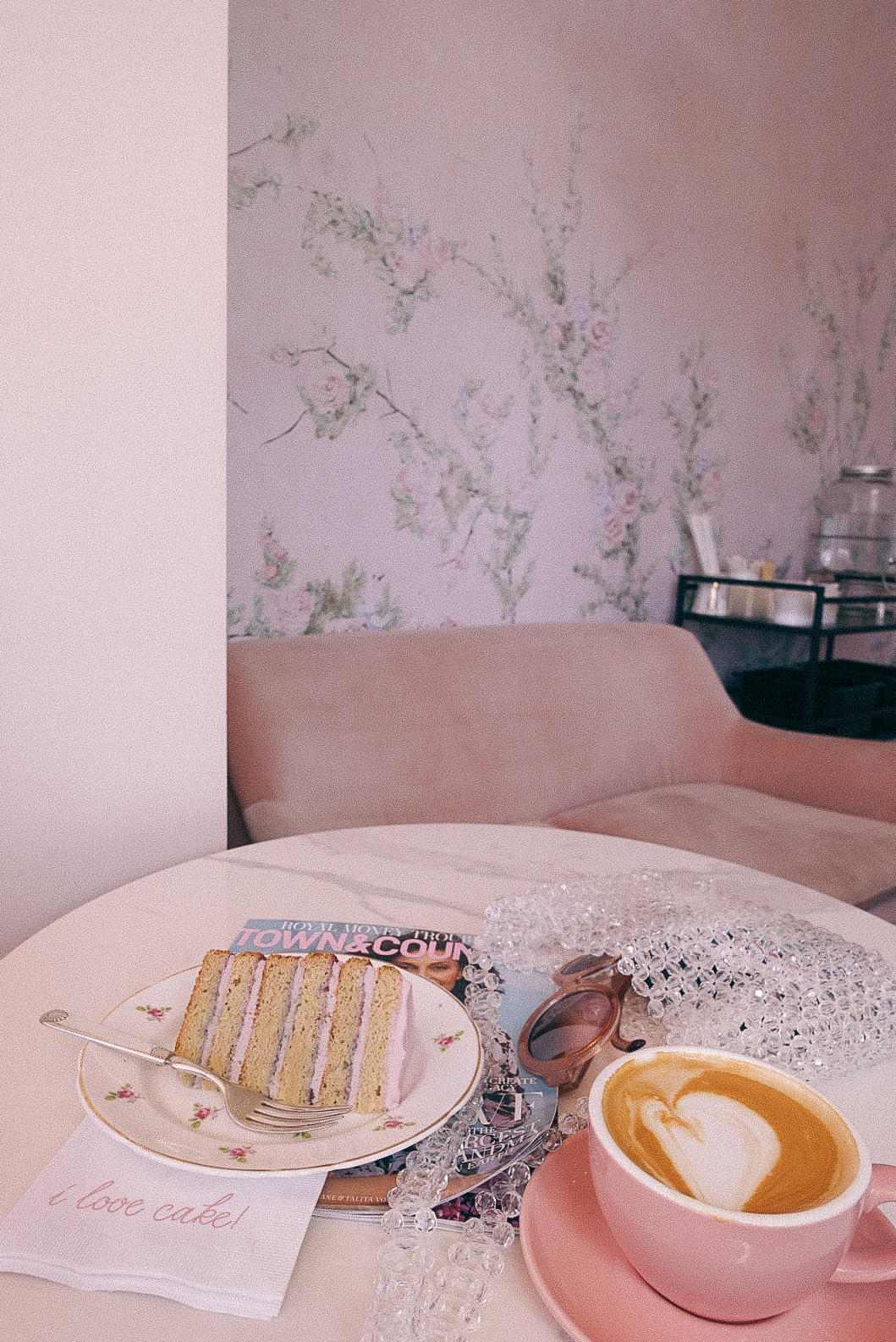 And no matter what your dietary restrictions, everyone can benefit from avoiding refined sugar! So when Sweet Laurel finally made a permanent mark by opening the most beautiful flagship storefront that has our eyes as happy as our settled tummies, my heart skipped a small beat. The space is as stunning in person as is it looks in pictures. A quaint little cafe decorated in florals, velvet, white marble and endless amounts of the prettiest shade of pink. It’s a perfect spot to grab coffee and a slice of cake with a friend or pick up dessert for a dinner party, which I have already done now a few times. Most recently with my friend Samantha, who just as equally appreciates a gorgeous background to sit and hang out. Some hits not to miss there; the downright adorable rose tea latte, vegan carmel latte, the vanilla coconut jam cake (pictured below) and brownies.