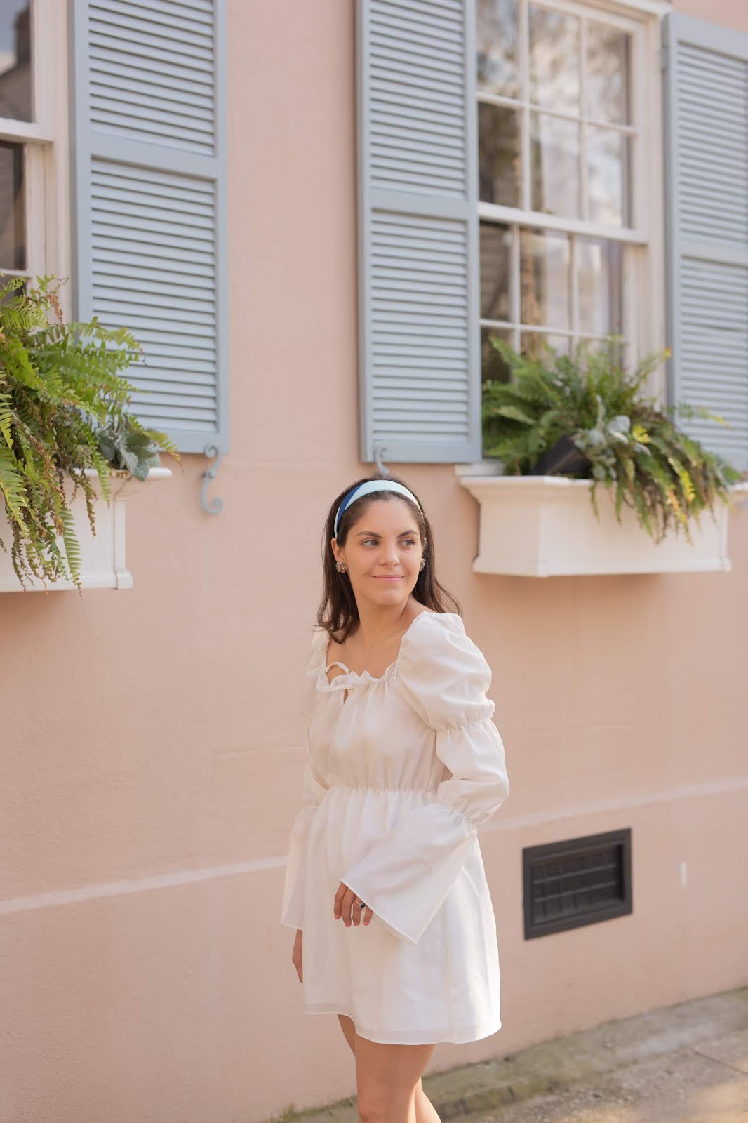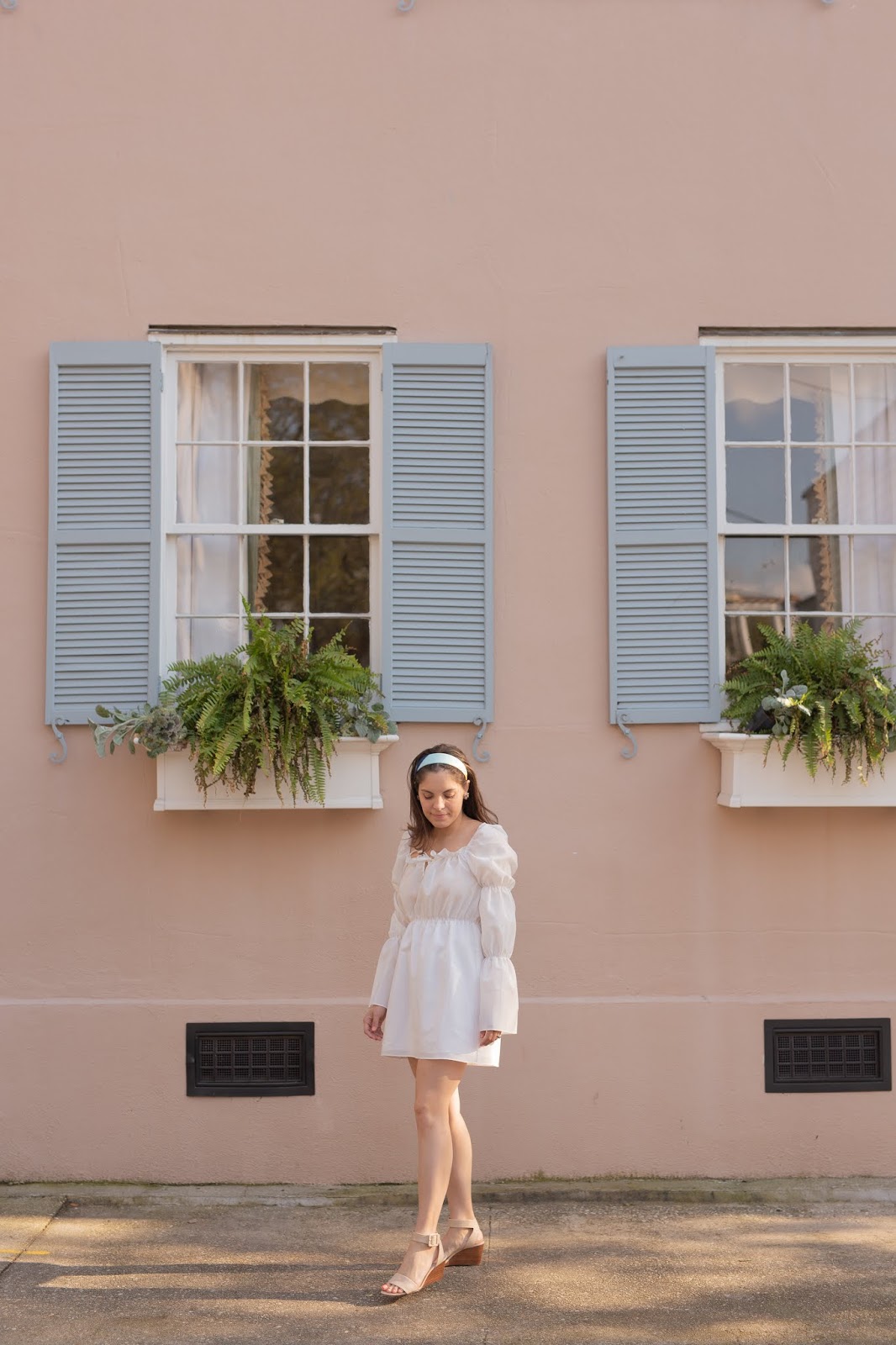 And even though Labor Day hasn’t happened yet, this is a perfect way to prepare ahead of time or just break the super lame and irrelevant rule. So the second I purchased this dress, I right away mentally packed it in my suitcase to Charleston. My sister and I went last weekend for a girls trip to celebrate my getting married this year and so wearing a chic white number was certainly in the cards. Unfortunately, the rain took over for the majority of our trip but I was able to shoot it in front of the most perfect home in Charleston with the lovely and extremely talented photographer Gladxia Mari! To top off the crisp white I added a chic headband I found in store at Forever 21 recently.
