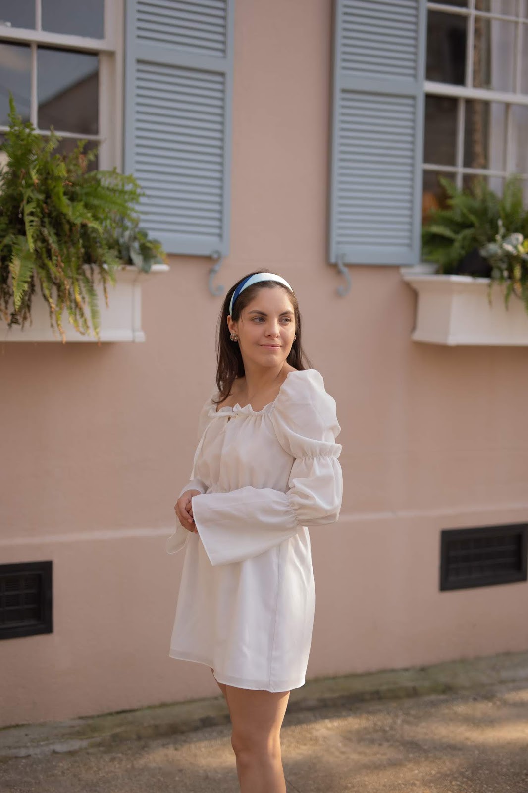 I’ve been searching far and wide… for a dress like this with THESE sleeves! I’m obsessed with the puffy, multi-gathered sleeve, which is actually called a a Marmaluke or Virago sleeve for anyone as obsessed with this style as me! As you might already know, I am always on a continuous, year round search for the perfect little white dress, a timeless staple in my closet and an item I don’t think I will ever be done with. There is just nothing that can top a clean, white ensemble in my book; it’s basically my version of the little black dress.