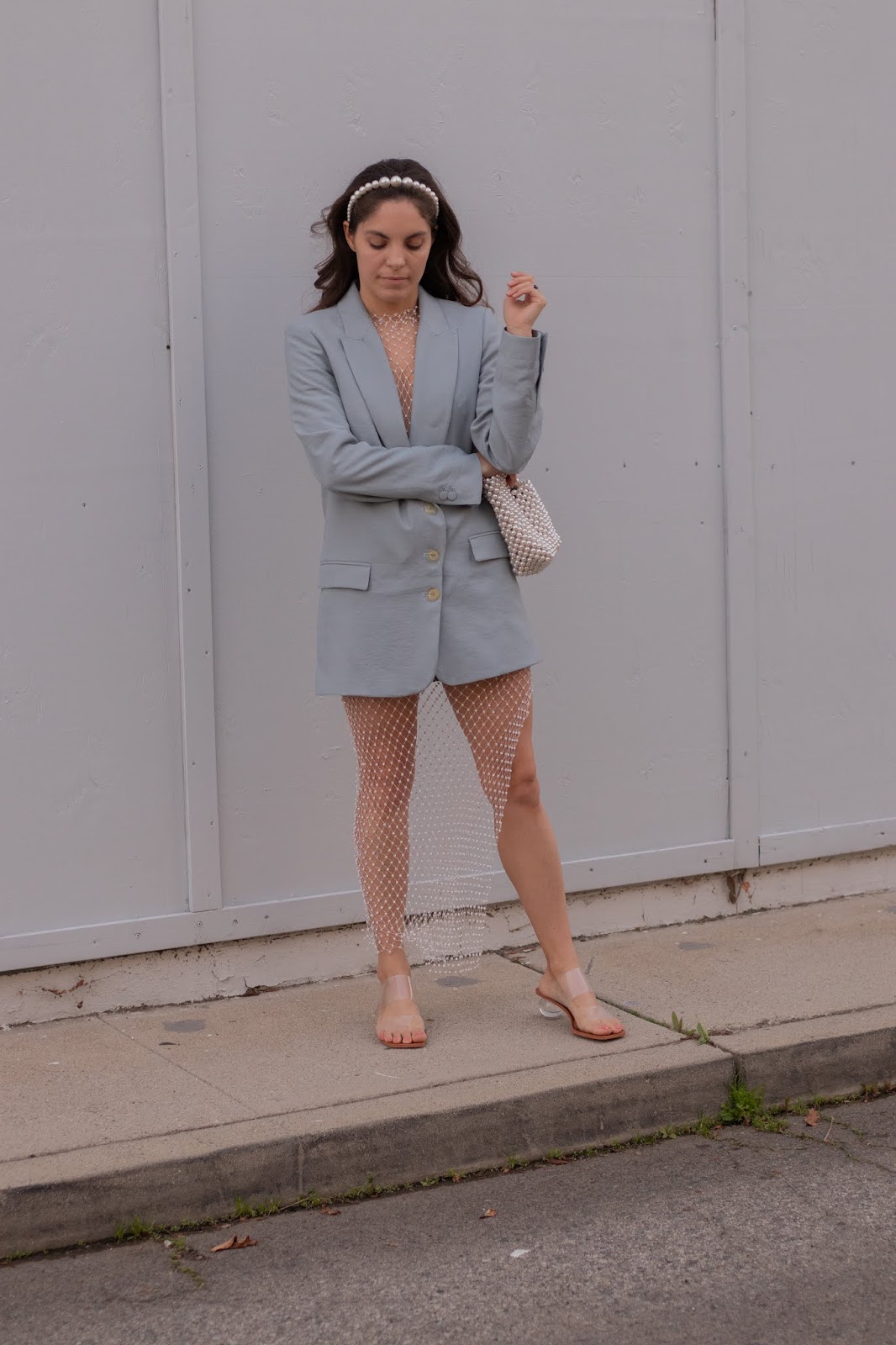 I decided that as much confidence as I had, wearing big loose pants was too big a leap for me so fortunately I found this high cut maxi coverup as a nice little stepping stone towards full on, give no f***s fashionista. From the start I knew I’d opt for a white or pastel colored blazer but it needed to hit just right to pull this whole thing off.