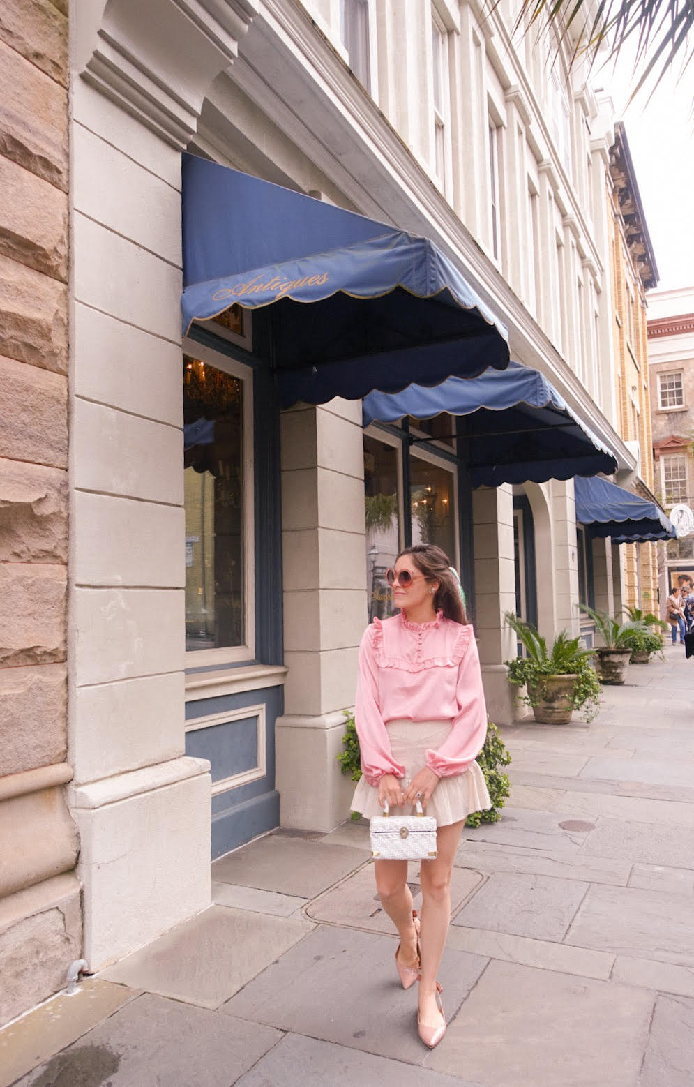 I’dimagine Spring cleaning… is really taking on a new meaning this year. With everyone cooped up inside, exploring the ignored spaces of our homes, I am certain cleaning up shop is a common trend right now. I’m just getting started in terms of unpacking boxes that have been sitting for almost a year in our guest bedroom, the same guest bedroom we lived in for some time amongst all our stuff we brought from our apartment. But given the bigger space I am still in search of some additional items and of course can’t help take extra time to browse all the little additions to make all the difference at home. I’m particularly obsessing over scalloped edges, hence these photographs from Charleston last year, where I insisted on a photo op with the perfectly blue trimmed awnings.