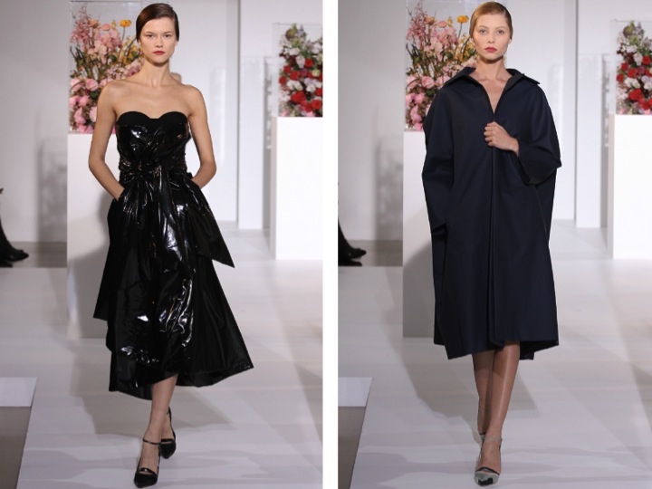Every fall collection usually involves some or many, all-black looks, and these are wonderfully chic in my opinion, the over sized coat (above) is a a big trend now for fall and this one looks irresistibly comfortable…not sure which shiny material this dress (above) is made of but I do know I like it! It adds some fun to an otherwise simple black dress with a wonderfully sweet(heart) neckline…