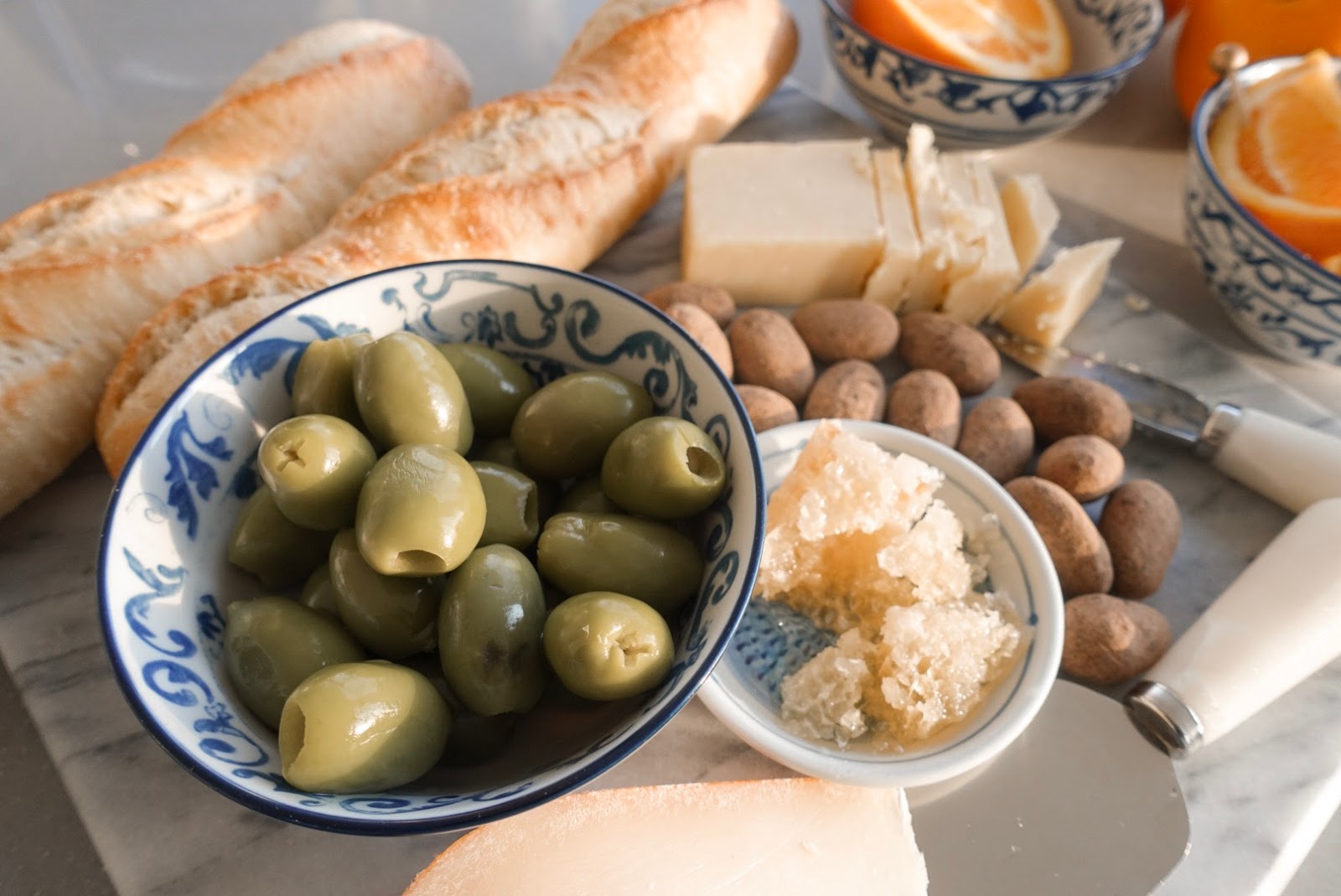 So in honor of the upcoming season I was inspired by the festivities and beauty of Europe in the summer, Italy in particular and there the theme was born. For the food I had my fiancé whip up dishes from various European countries; a spiralized cucumber and feta salad (Greece), potato au gratin (France), fish-without the chips- (England), cacio e pepe pasta (Italy). My contribution involved less culinary skill and more fun with my sheep cheese (Portugal), chorizo (Spain) and Aperol Spritz, olives and chips (Italy).