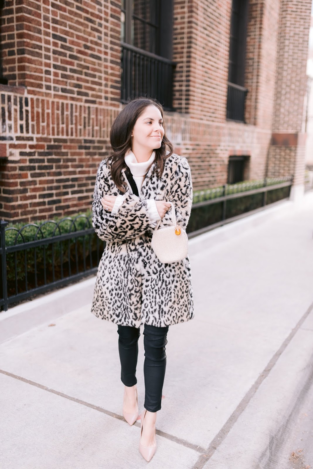 When done right… leopard exudes timeless style and I consider it quite glamorous. However, I have always gone back and forth between whether or not leopard has become tacky or remains a perfect example of forever fashion. And I think the fashion industry has also wavered a bit over the years, as many trends do, particularly when people overdo it and we all need a short break. But this one always seems to come back into my closet fairly quickly, almost every other fall season. Like many, my love of leopard started very early on in my fashion history. Fashion history is a thing right? Like the history of my fashion choices since birth? If not, then I’d like credit for coining the term “fashion history.” My strongest memories always go back to the beloved Fran Drescher character from The Nanny, a show I grew up on and can honestly attribute a large amount of my fashion confidence or just confidence in general to. Of course Fran wore leopard frivolously and it was representative of her strong personality, something I always admired about her. I too loved to wear the bold print growing up. I had leopard hats, purses, skirts, jackets. My favorite was a matching black skirt and jacket with faux fur leopard edges. It was adorable. But despite the many ways it has shown up in global fashion markets, I personally will always love a fur leopard coat. The style of prints I’m drawn to tend to change here and there, but I will always consider it to be really chic. Because it’s so bold, I usually wear it over a cream sweater or white shirt, jeans and simple flats during the day, maybe nude pumps at night. Either way, I have linked a bunch of styles below at the end of this post, and how I wore it right here. Enjoy!