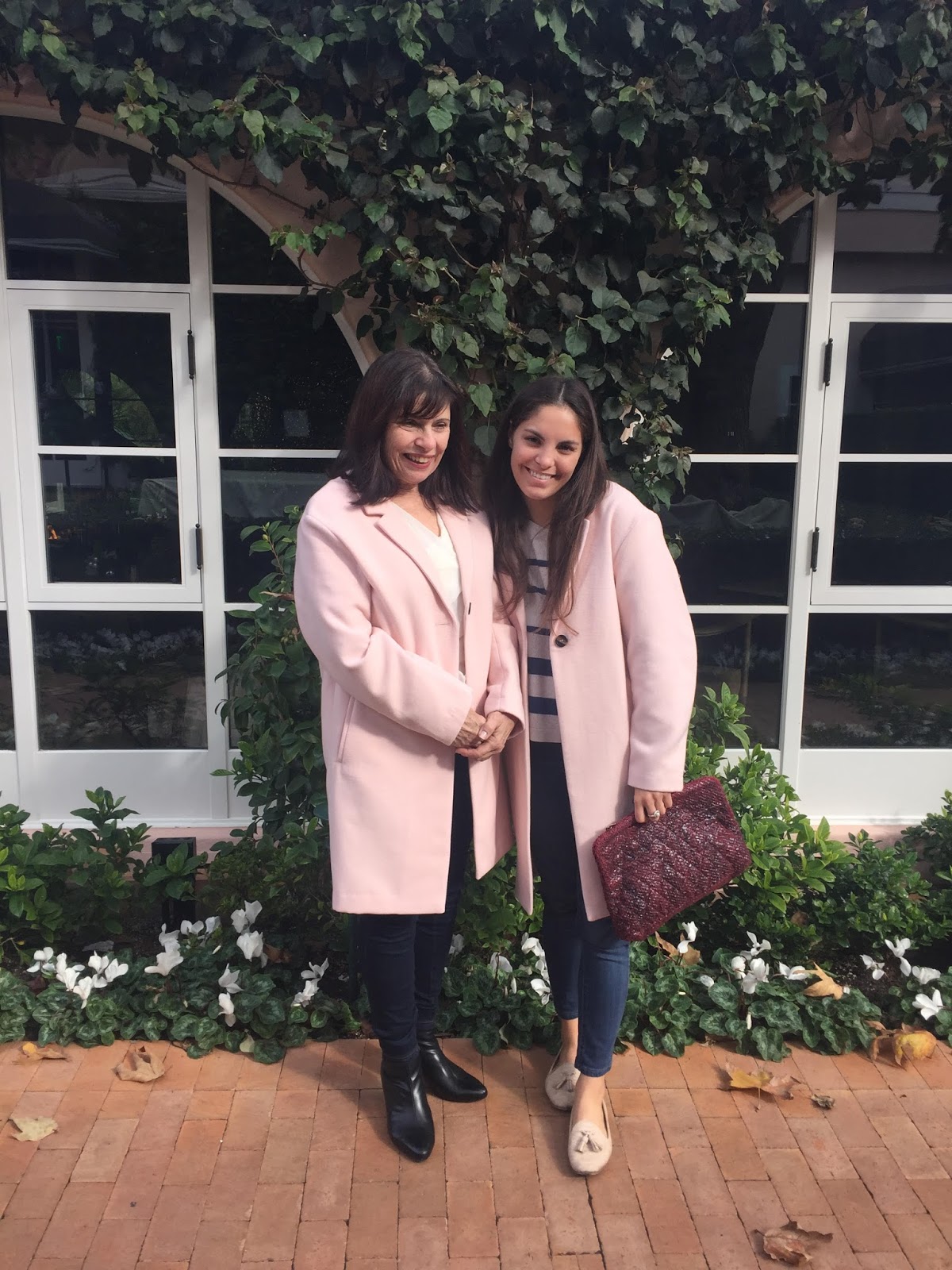 The pink coat… has been a staple of mine since I was thirteen and ordered a hot pink one from Delia’s, the CATALOGUE, literally after filling in the last page with the item numbers and mailing the request. At that time pink wasn’t as popular, but thankfully Legally Blonde came out shortly after, making me look like the young fashionista I always knew I was deep down. As you can see the trend still continues and both my mom and I are fully on board (see below). After getting so many requests for my coat in a recent post and being inspired by the infamous nutcrackers that make an appearance at the Beverly Hills Hotel every December, I figured it was time to link some more options. Enjoy!!