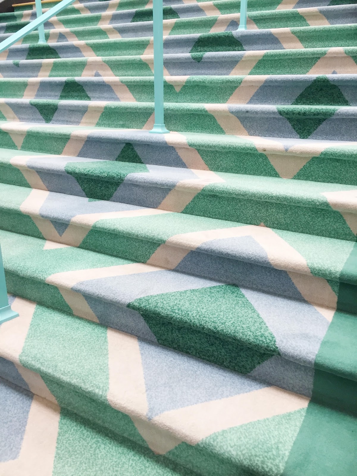 Perhaps my favorite combination of color and texture here with the pink, green, navy, velvet and stripes oh my! It’s one pattern away from Willy Wonka but it veers just right. I would love to take and seat and wait for my uber here with some friends right after a long day of napping in the sun.