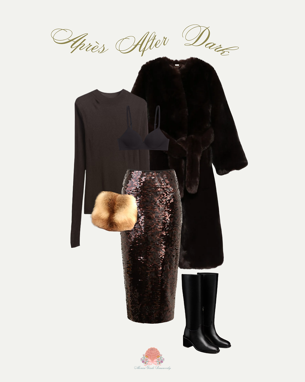 Warm can still be fun! I love layering monochromatic knits, sequins, fur! Tights, high boots and long warm coats make skirts and dresses more feasible. Even if going all black or all cream, I like to mix textures and add something luxe like sherling, fur, or suede. Muffs as purses make everyhting more fab, even if they don't actually hold much!