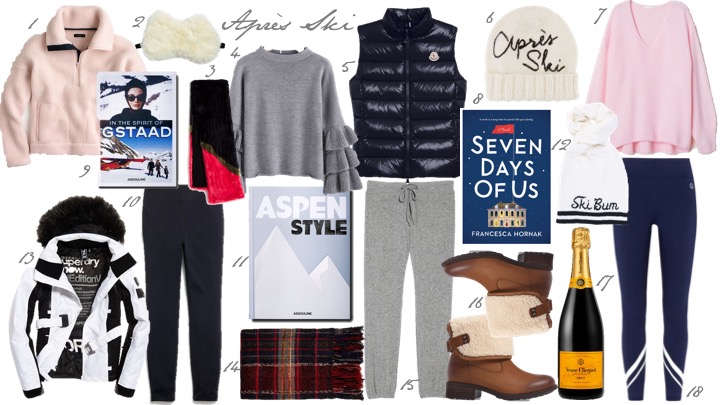 I am certainly no expert in appropriate ski-wear, I take my inspiration from Slim Aaron’s photographs in Gstaad, but I do know what’s cozy and cute in cold weather. I love any uniform that involves wearing cashmere sweaters with leggings all day and unfortunately I couldn’t find anymore après ski logo sweaters available, but keep your eye out for any leftovers at H&M, where I found my cute red one! I’d also recommend a furry scarf and a knit hat for extra warmth, something I have tended to forget about living in Los Angeles! Other cute essentials below.